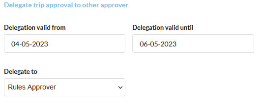 Depending on the setup and if your role is approver then you will have an additional option to set in General Information and that is Delegate trip approval to another approver. With this option, you can set that all approvals for reservations that will come to you for approval during the specified time range will be delegated to another Approver from the Travel Group. This option is used when you are out of the office for some reason: