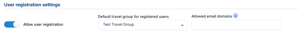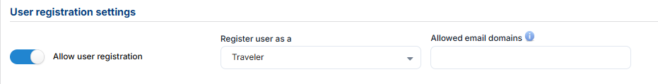 - option to add allowed domains for traveler email, you should note that this can be list of domains and it should be separated with ';' for example "gmail.com;yahoo.com;outlook.com"
