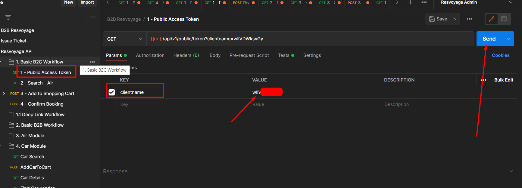 - First, you need to generate a token, you can do that you go to the Public Access token and for the parameter client name put Unique Website Code that support gives to you. Also, you can find that code under the website settings: