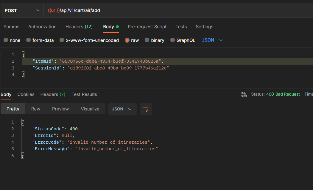 -If you add the same ItemId for the same SectorSequence then you will receive the error invalid_itineraries_added.