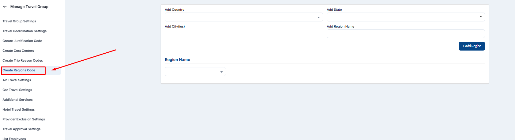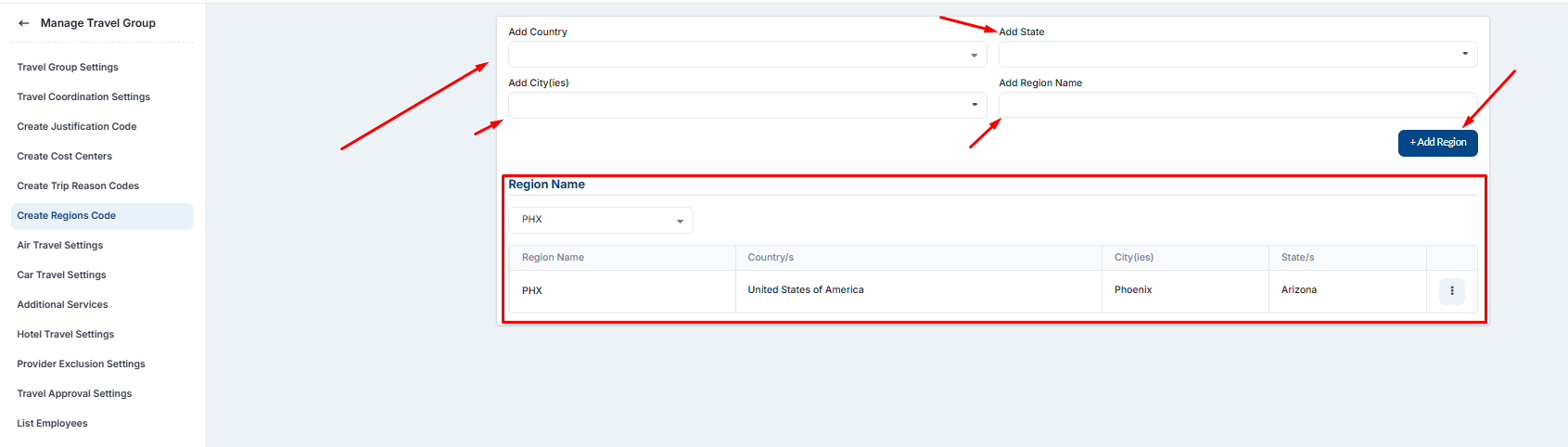 INFO: Newly created region can be used as an option when creating Air/Car/Hotel travel policy.