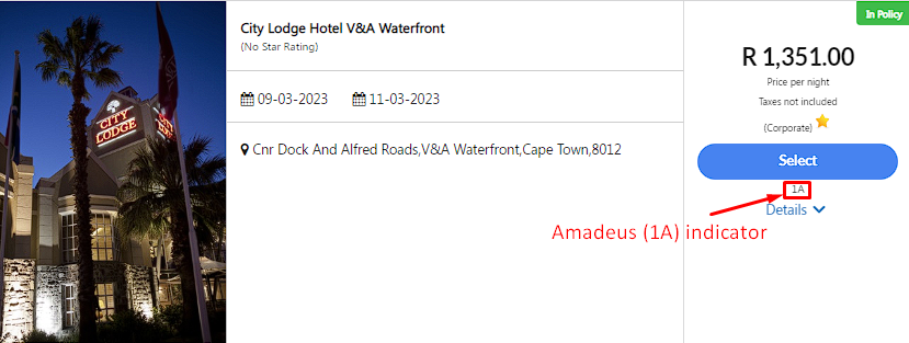 | Display Hotel Provider Info | Activates the ability to see the hotel provider. An example of a hotel provided by Amadeus GDS: Image No.2 Example of Hotel Provider Info |