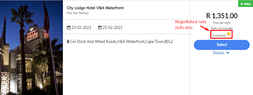 | Special rate codes to search (Amadeus, Sabre) | Part of Hotel Travel Settings, where special rate codes are entered for either Amadeus or Sabre GDS. A universal indicator for a special rate code being applied to the search result is a star icon (⭐). Each Travel Group can have up to eight special rate codes specified. An example of a special rate code in the search results: Image No.4 is an example of a special rate code |