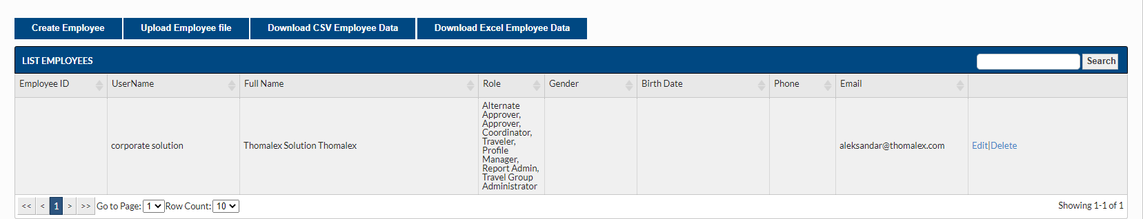 Additionally, through List of Employees, you are able to sync the traveler information from and to GDS systems and also do the bulk upload/download of employees.