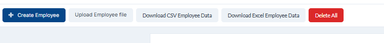 The four options on the top are "Create Employee", "Upload Employee File", "Download CSV Employee Data", and "Download Excel Employee Data" will be further explained below: