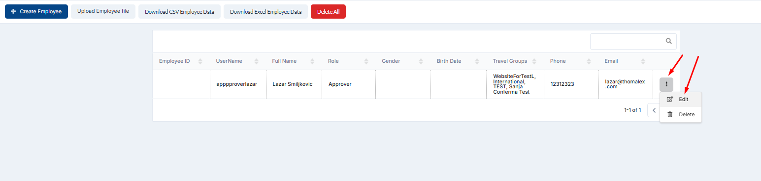 To do this, we need to Click on Edit next to the Employee which you want to Edit the information for
