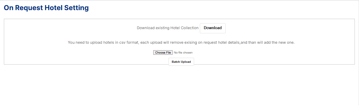 | Download the existing Hotel Collection | Once you click on the "Download" button it will download the existing On-request hotel collection in a .csv format. |