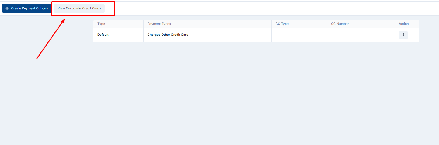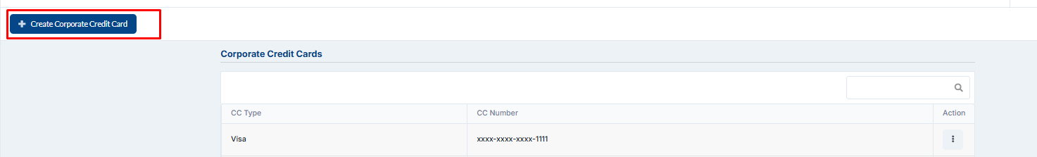 Once the option is selected, the list of already created corporate credit cards will be presented as well as an option to "Create Corporate Credit Card":