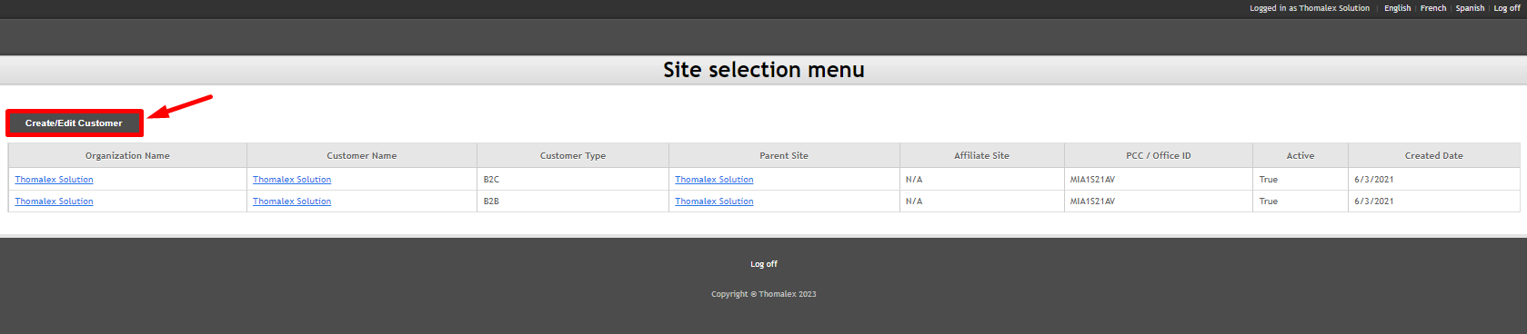 The technical capability of website admin accounts (Organization Admin, Customer Admin) that are provided to customers in the Thomalex system comes with the ability to create or manage a "Customer" as well as "Websites" and "Affiliate Websites".