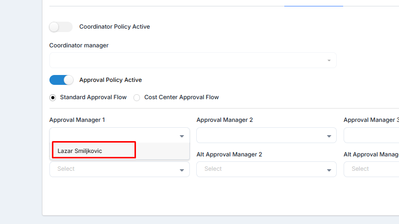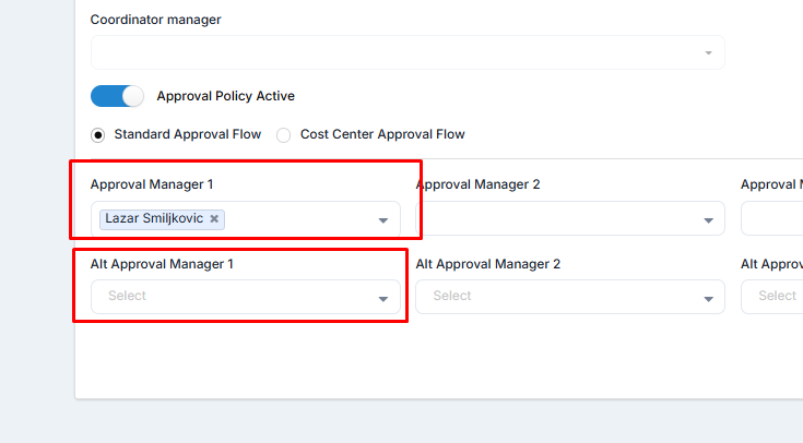 Image no.6 Standard Approval Flow Approval Managers and Alternative Approval Managers Being Set