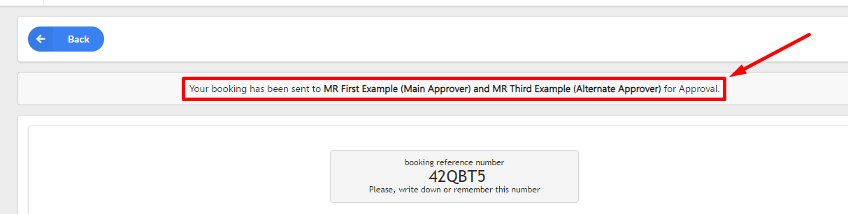 Image no.11 Alternative Approver Approval Request Message Upon Booking Completion