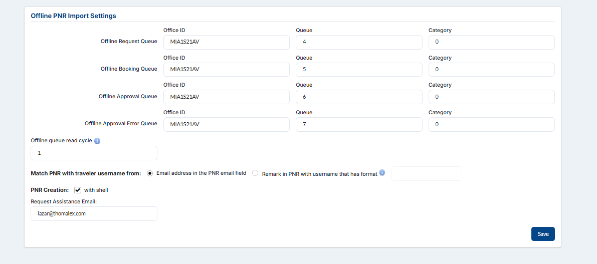 NOTE: The empty PNR will be placed on the Offline Request Queue that you set under Offline PNR Import settings. When you are creating offline PNR you need to place it on the Offline Booking Queue. That is mandatory in order to import works as expected. Check the image 9.
