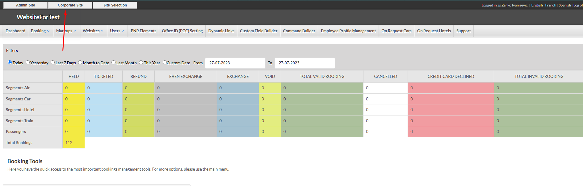 Admin panel → Corporate site → Edit Travel Group → Travel Group Settings → Allow traveler to book travel partner