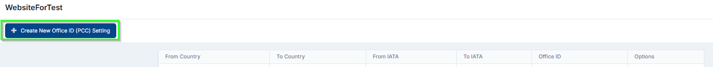 When you click on it, you will see the Office ID that you are currently using on your website (Internet OID from website settings). If you want to add an additional Office ID or PCC from which you will get content, click on Create New Office ID (PCC) Setting: