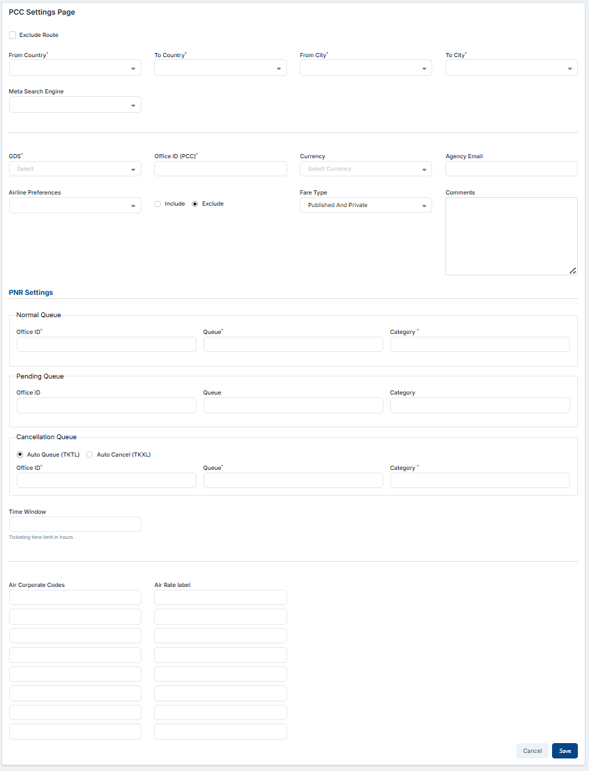 | Office ID (PCC) | Here you will enter the Office ID or PCC which you want to add. This option is mandatory. |