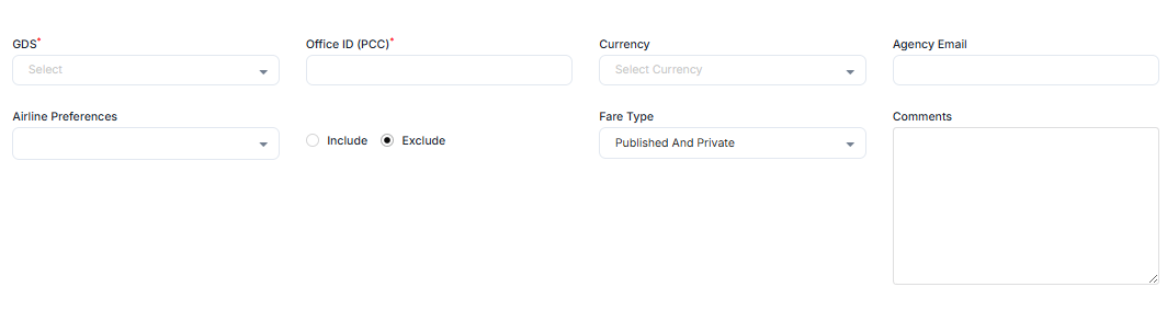 | Fare Type | Here you can specify which fare type you want to search using this Office ID. |