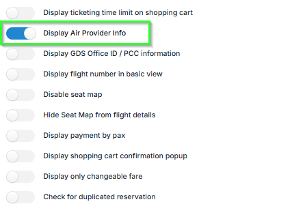 If you will use two GDS, for example, Amadeus and Sabre, in the Air travel settings, you need to enable the option Display Air Provider Info: