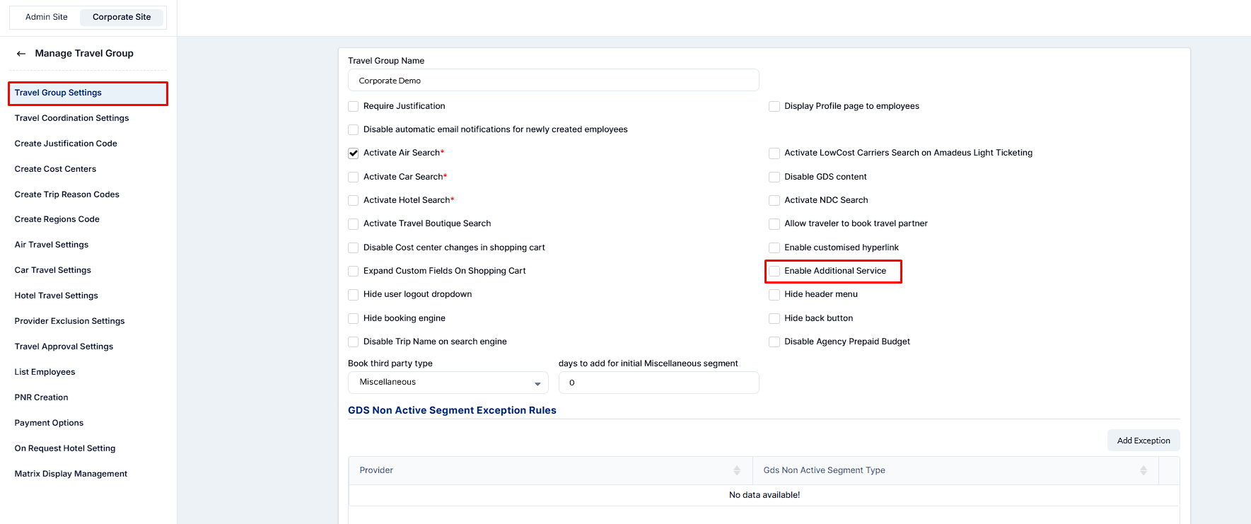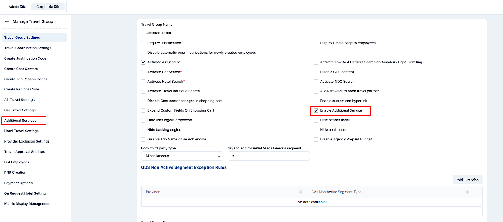 After Enabling the Additional Service option, we should see a new option called "Additional Services" shown in the Left-Side Bar.