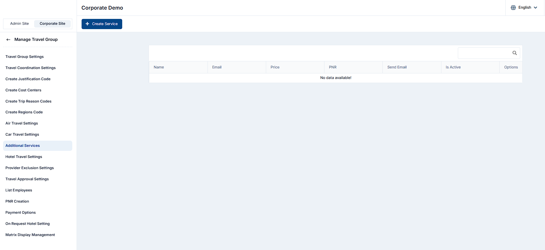 By clicking on the "Create Service" button, a different tab will be shown which will require all of the relevant information to be added regarding the Additional Service we are making.