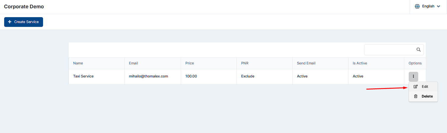 When the Service is made, we are able to Edit or Delete it accordingly.