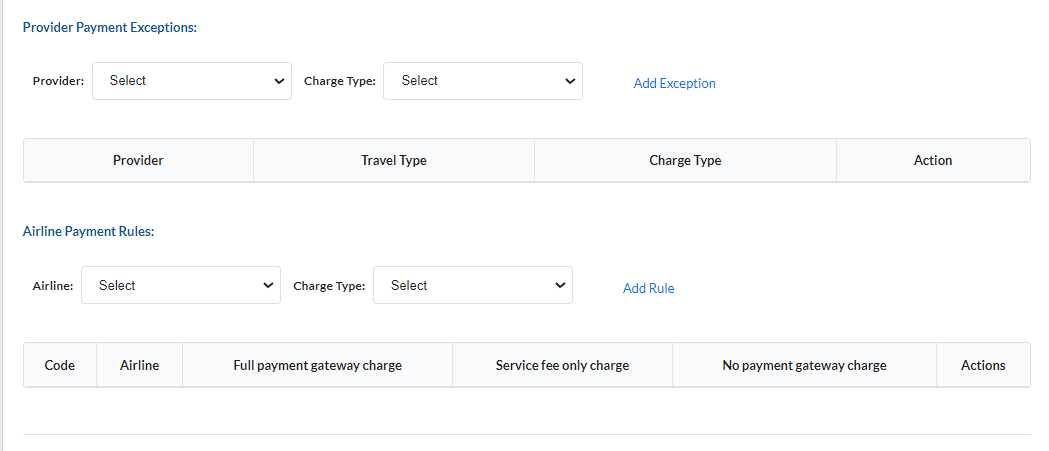 Image 4. Provider Payment Exception and Airline Payment Rules settings