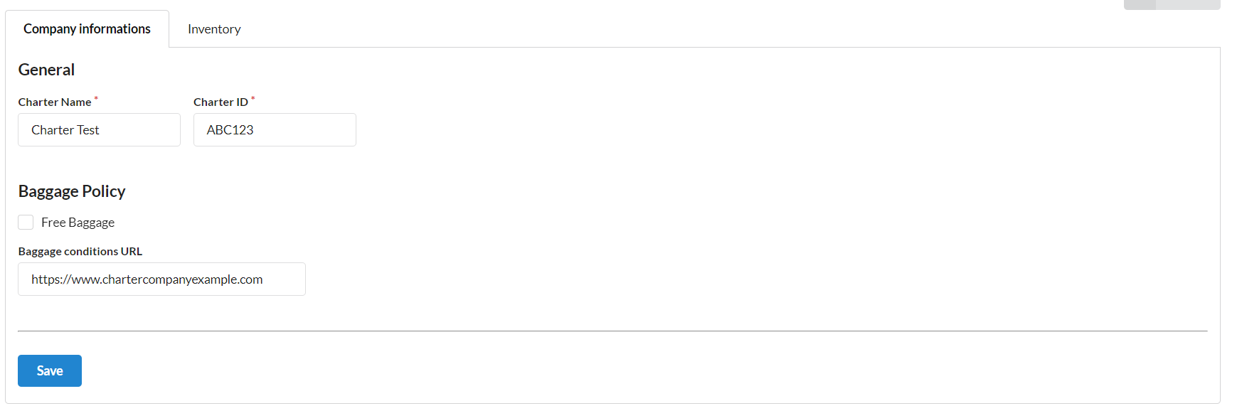 | Baggage Condition URL | Baggage Condition URL. This field is not mandatory. |