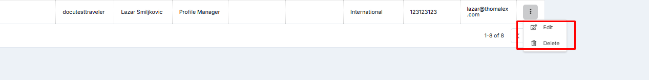 On this window, we can see that all of the Employees from the Travel Group selected (Travel Group where the Profile Manager has been added), we can Edit the Employees and also Delete them respectively.